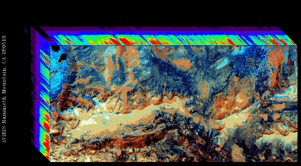 Hyperspectral (AVIRIS) image of Mammoth Mountans, California. 1024 x 512 pixles, 224 bands, approximately 300 Mbytes od data.