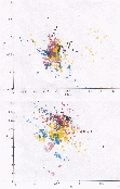 views of a 13-dimensional spectral data set of asteroids. The different colors