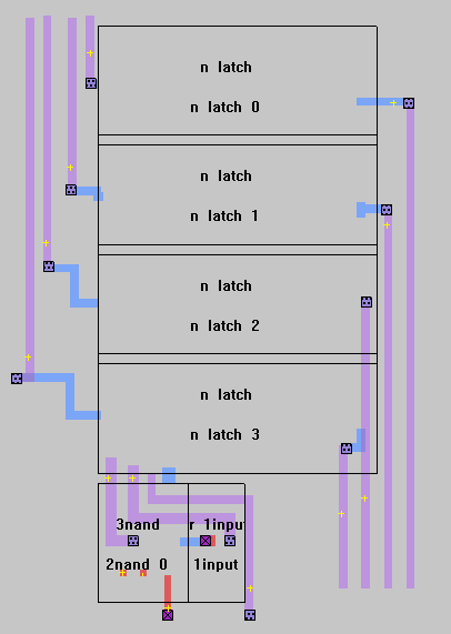 Subcells: 1-bit latch (n_latch) Inverter (invert) 3-input NAND (3nand) Back to JAWs Cell Hierarchy