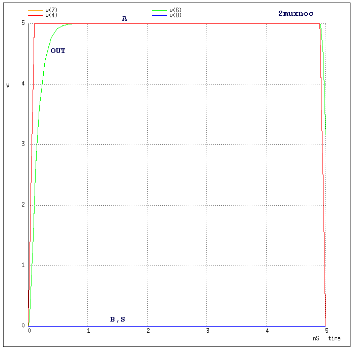 Node OUT0 is driven high at 1.69ns