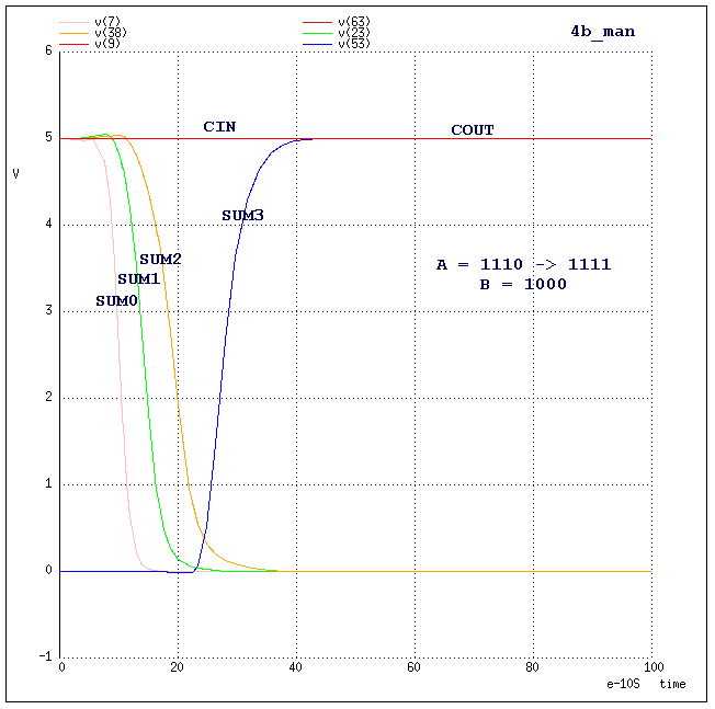 Specifically, we expect the following results from the 4-bit Manchester Adder: