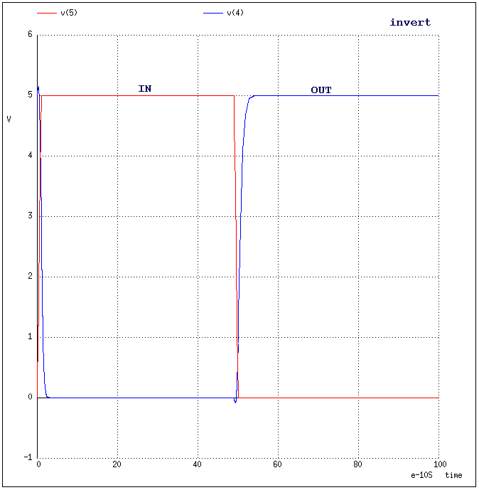 Node OUT is driven high at 1.26ns