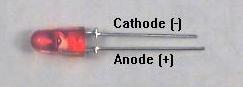 and the short lead (cathode) to the