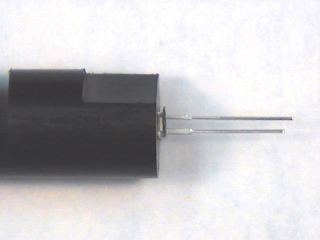 Press the phototransistor into the end of the holder having the flattened
