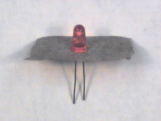 Push the leads of your red LED through the holes with the sticky side