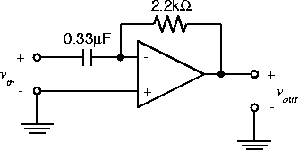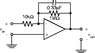 Sketch the output for each of the following 100 Hz inputs: 0.2 V p-p square wave, 10 V p-p triangle wave, 10 V p-p sine wave. |