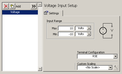 In the "Input Range" block set "Max" to 10 Volts