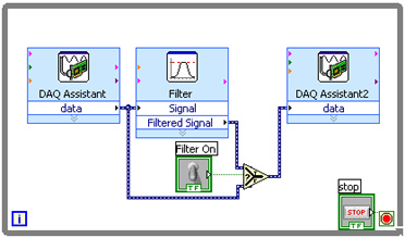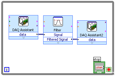Remove the wire between the A/D DAQ Assistant block
