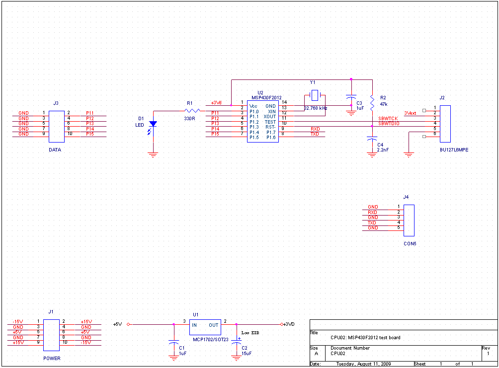 This branch of the MSP430 family uses the Spy Bi-Wire two-wire