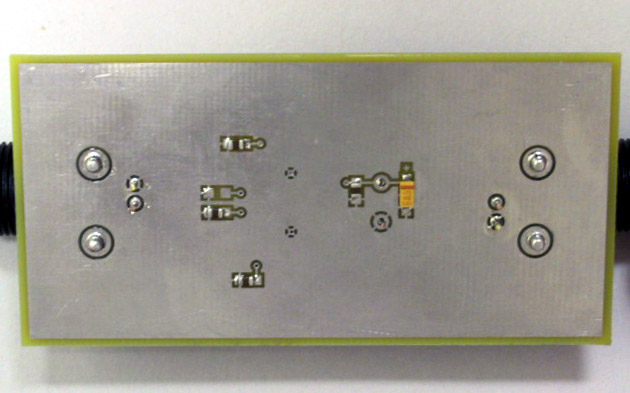 Another advantage of surface mount technology is that you can use both sides of the board. Most of the capacitors are on the bottom of the board, which looks like this when finished: