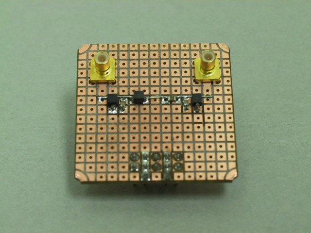 square pads on 0.1 in. centers, and the back side is a solid ground plane.