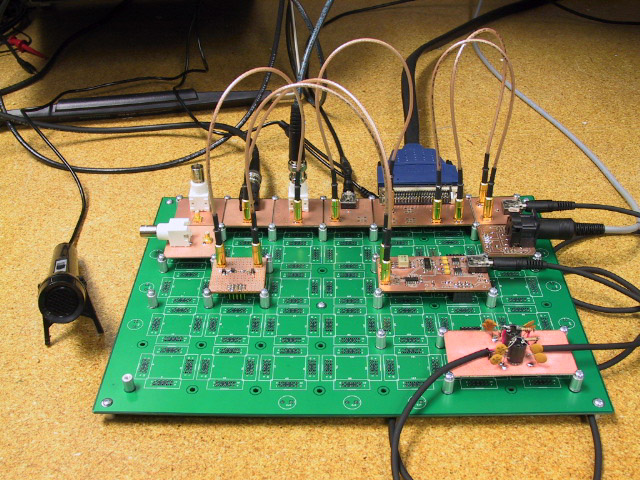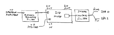 Connect the modulator, the two filters, and the D/A outputs as shown in the diagram.