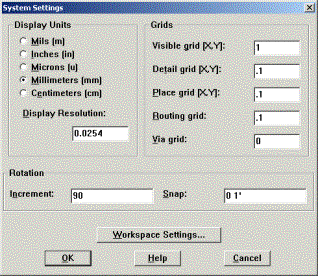 Before beginning routing in earnest, it is helpful to change a few settings. Open the System Settings and make the following changes: Visible Grid = 10, Routing Grid = 5, and Via Grid = 0. Next, select OptionsàUser Preferences and check Allow DRC Errors under Global Preferences. You may have to check the box labeled Activate Online DRC. The box with the dashed line will reappear. While DRC is on, you will only be able to place routes inside this box, but Layout will inform you if any spacing errors occur while you are routing. This will help you limit the number of errors that you will have to clean up later. You can resize the DRC box by pressing ‘B’ and drawing a new rectangle.