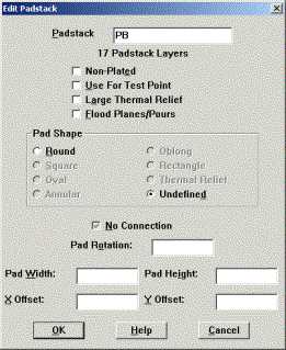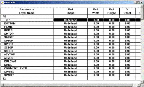 To change the drills, we must edit the padstack in the original footprint. The Drill Drawing layer can help you find which footprints need to be changed. For example, we can see that the PLD and TIL311 use 34 mil drills. This is not a valid size, but a 35 mil drill is acceptable. Open the Library Manager and use the padstacks spreadsheet to adjust the drill sizes (DRILL and DRLDWG layers) for these two parts. The footprints you are adjusting should be DIP-14 and PLCC-44. You may have to adjust several padstacks in each footprint. In addition, make sure that the clearances we defined earlier for each layer are still good (they should be). Finally, when making changes to footprints like this it is always good to check the datasheet to make sure that the part will still fit. You are only making very small changes of 1 or 2 mils, but it is important to check.