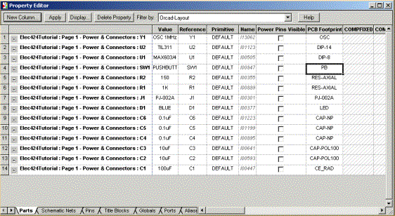 Since we have some new parts, we need to annotate the design again. Perform an incremental reference update as you did before. The new part should now have a number. Regenerate the netlist and start an ECO. When done, the part should be back in the design. However, when we cut and paste parts, all properties are copied, and this includes x and y locations on the board. Our new part is probably sitting right on top of another part. Use the components spreadsheet to locate the new part. Give it a new and safe location such as 0,0 and then use the Component Tool to place it in the proper location. You could also avoid this problem by resetting the coordinate properties in Capture before regenerating the netlist.
