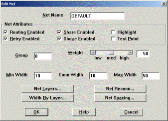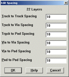 A. Route Spacing – You have set a minimum of 10 mils for feature spacing in your design. However, do not pack traces closely together unless you have to. First, you can push the manufacturing limits to far and some of your boards may come back bad. Second, routing traces closely together is generally a bad idea because this can result in undesired mutual inductance between traces.