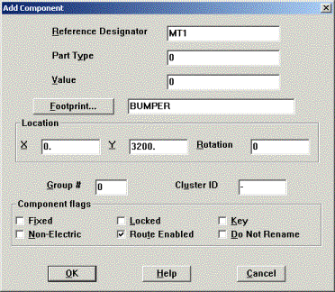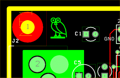 It is also customary to add a logo and some information about the board, as well as the initials of the person who designed it. First, let’s add a logo for Rice University. Using the Component Tool, right-click and select New… Give this new component a reference designator of OWL1. The Footprint should be RICELOGO from your library. The logo will actually be in the metal layer, so place it somewhere where it will not interfere with any traces or pads. When placed, open the Edit Component dialog from the components spreadsheet and check the Fixed, Non-Electric and Locked boxes, uncheck the Route Enabled box. When you next save your design you will be asked to back annotate since you just added a new component.