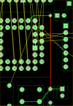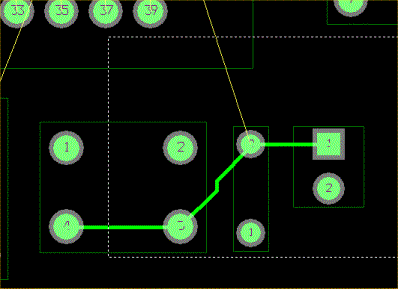 When routing you will want to refresh the display occasionally to redraw the ratsnests. Now connect the resistor to the PLD. Since our traces on the top layer are already oriented horizontally, let’s place this vertical route on the bottom layer. When you begin the route, press ‘2’ to switch to the bottom layer. Since the resistor is a thru-hole part, there is no need for vias in this situation.