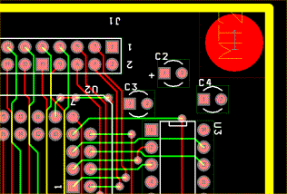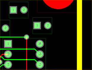 You will often use ECO to do forward-annotation, but there are only a few occasions where you may want to perform back annotation. One such instance is to rename components. Right now, all the components in your design are named according to their order in schematics. However, in a larger board, it will be very hard to tell where a specific component is during debug. The components on the board will seem to be named in a random manner. Layout can rename your components for you, which will make finding them on the board much easier. To see the results of this operation, make the silkscreen layer visible again (SST). Select OptionsàComponents Renaming… and choose Right, Down… in the Rename Direction dialog.