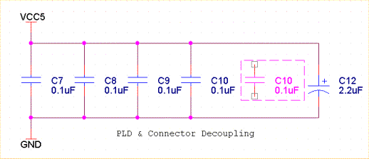 Now let’s go the other direction. Perhaps we have one to many decoupling capacitors, so we will remove one. On page 2 of your schematics, delete on of the decoupling capacitors.
