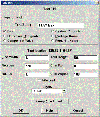 Most text you create will be Free. For good readability, I suggest a Line Width of 8 and a Text Height of 75. A 6 mil Line Width is about as small as you can go to keep the text readable.